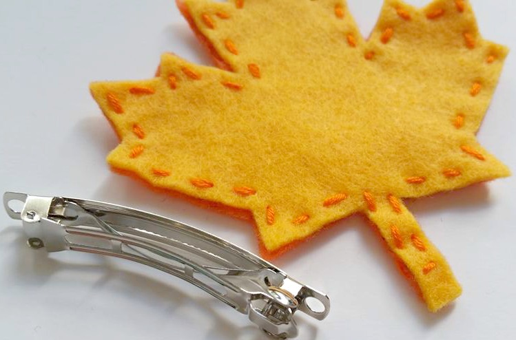 Step 1 : Choose a maple leaf size and trace one maple leaf onto 2 different colors of felt. One color for the front and one for the back. (I wanted mine to be 2 different colors)